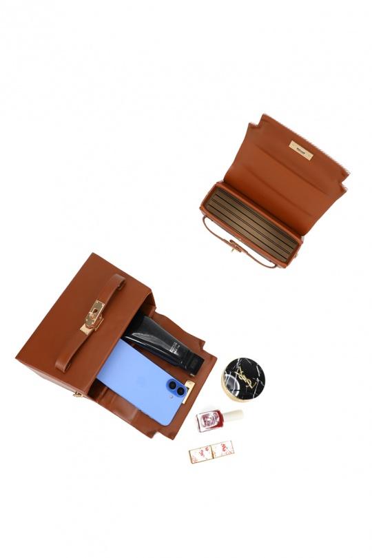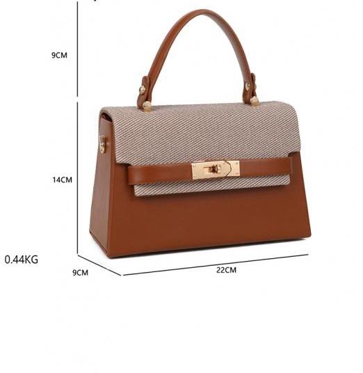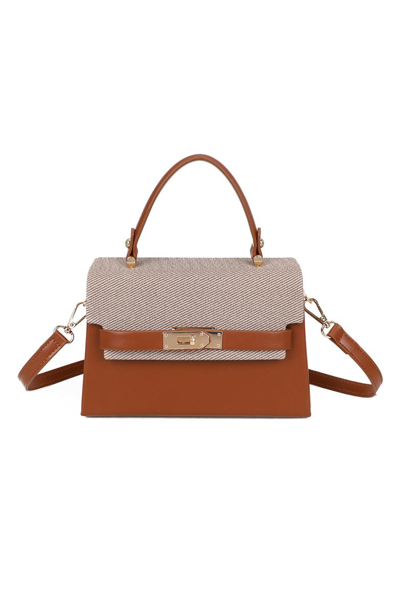 Make a stylish statement with this elegant two-tone small handbag, crafted from premium faux leather and textured fabric. The rich warm brown (tan) faux leather base is perfectly complemented by a beige herringbone-patterned flap, creating a modern, sophisticated contrast.