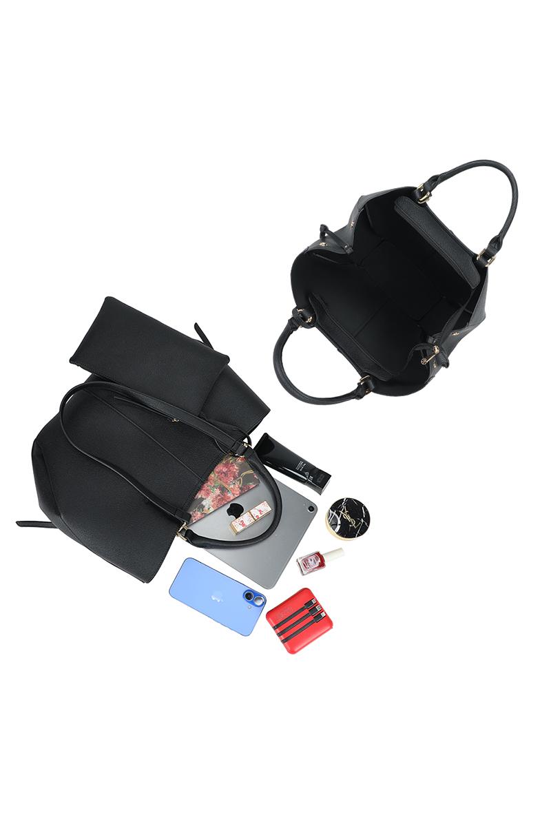 Inside, the bag includes a small pouch—perfect for accessories such as keys, cosmetics, or a mobile phone. The soft inner lining helps protect your personal belongings.